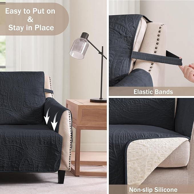 - Water Repellent and Anti-Slip Sofa Slipcovers: crafted from super soft and water-repellent microfiber fabric, which can not only safeguard your sofa with all-around protection but also allow liquids like coffee or juice to bead up and roll off without soaking into the sofa, keepping your couch dry and clean; our Pamhaven sofa cover is designed with two anti-slip elastic bands and non-slip silicone on the back side, ensuring a snug fit that stays in place and preventing slipping and sliding