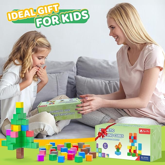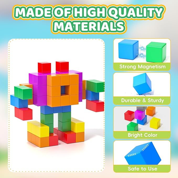 - 64 PCS Magnetic Building Blocks: This magnetic blocks set contains 63 pcs bright color magnetic blocks, a magnetic toy figurine, a manual and a storage bag. Made of reliable ABS material with a smooth and rounded surface, ensuring safe and worry-free play for children