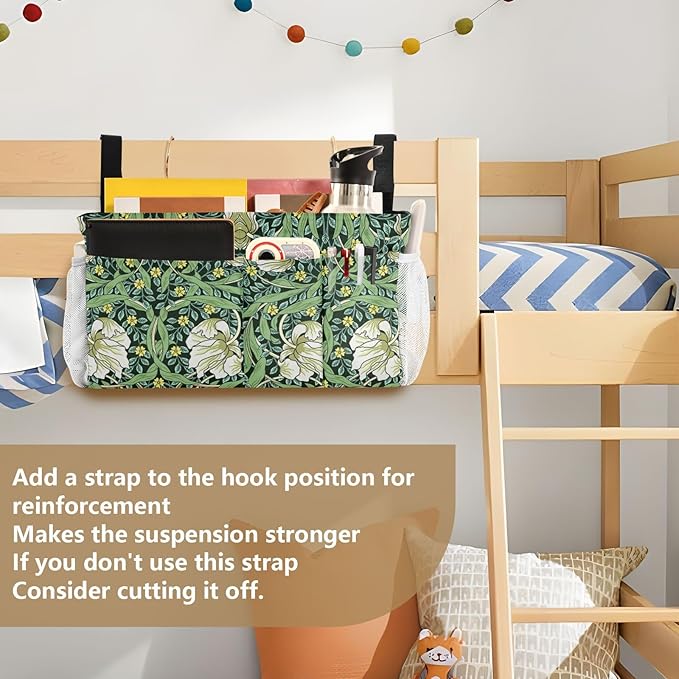 - Dual Mounting Options: Equipped with both hooks and straps, this bedside caddy organizer can be securely attached to metal rods or wooden slats, making it versatile for different types of bed frames and chai