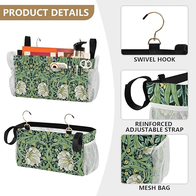 - Convenient Spacious: This large-capacity bedside caddy with hooks offers a simple solution for keeping your space tidy and organized. It’s ideal for bedrooms, nurseries, and living rooms, adding both function and style to any setting