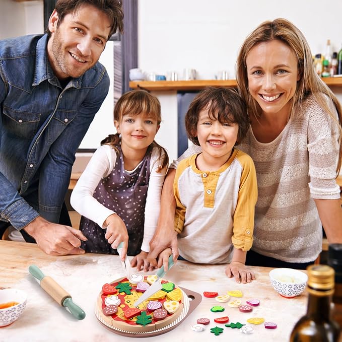 - Safe and High Quality: Made from 100% non-toxic wood and coated with food-grade water-based paint, this pizza toy is both sturdy and easy to clean, providing a safe play experience for your little chefs. It’s the ideal gift for boys and girls aged 3 and up.