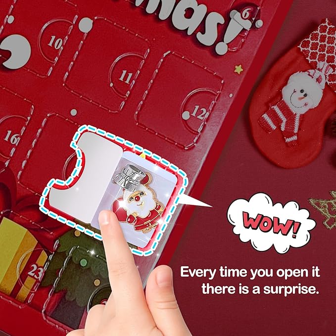 - Creative Christmas Countdown Advent Calendar - Unleash the fun of creativity through our bracelet advent calendar 2024. Each window from December 1st to Christmas Eve brings new surprises. The Advent Calendar 2024 bracelets include 2 delicate chains and 22 unique Christmas beads. From snowmen to various shapes of Christmas trees, colorful crystals, bells, reindeer, and Santa Claus. Each advent calendar charm bracelet can be customized with an extension chain fit based on your wrist size.
