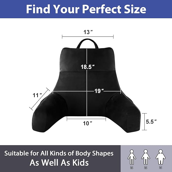 Back Pillow for Bed Sitting up, Reading Pillow for Sitting in Bed Adult, Back Support Pillow, Memory Foam Sit up Lounge Backrest Pillow with Arms for TV, Couch, Chair, Dorm, 18 Inch, Black