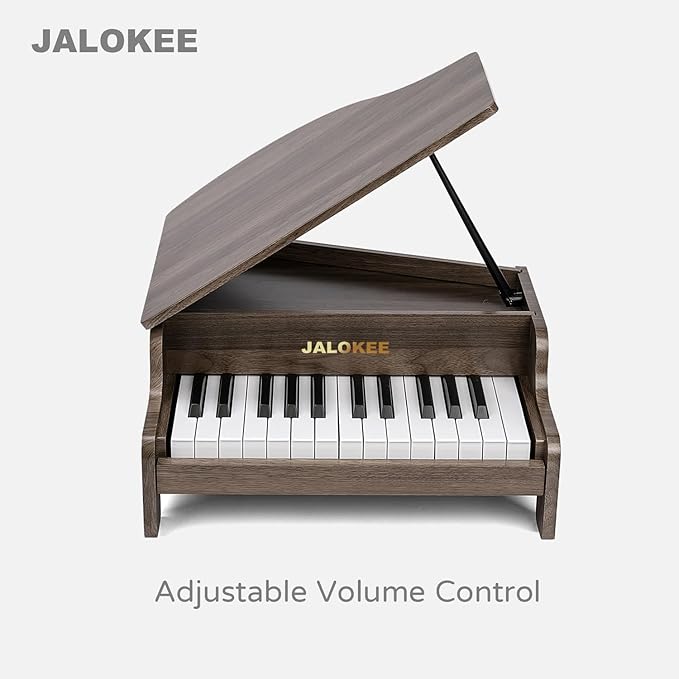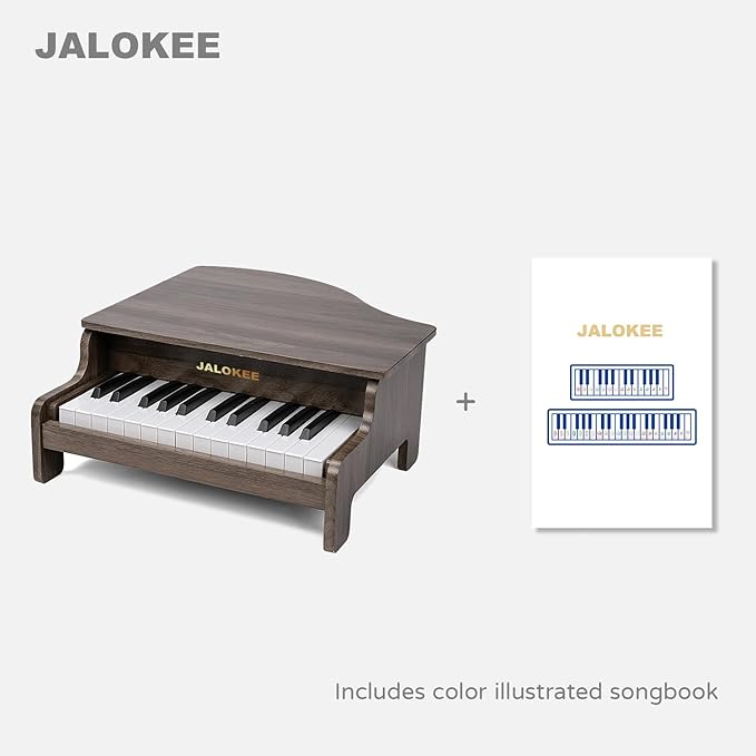 - 【25 KEYS DIGITAL PIANO】This JALOKEE piano is a miniature upright wooden piano that features 25 keys and 2 full octaves and offers an ideal introduction to music and help children transition to a full-size piano as they grow in age and experience. The sounds are made electronically with precision to eliminate the need for hand-tuning.