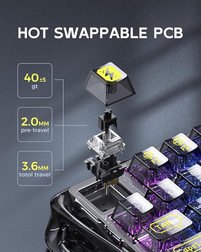 - 🏆Stylish and Unique Design: The GravaStar Mechanical Keyboard features a hollow and skeletal design that breaks away from traditional keyboard aesthetics, making it a standout piece on any desk. Constructed from durable PVC material, the transparent frame and keycaps maximize the cool backlight RGB effects and wear-resistant appearance.