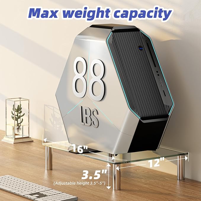 - 6mm Tempered Glass: Constructed of 6mm premium tempered glass and with a maximum weight capacity of 88 lbs, this monitor stand provides stable support for your device,Our tempered glass construction gives you peace of mind,This process strengthens the glass, making it more resistant to impact and thermal stress, ensuring longevity and safety