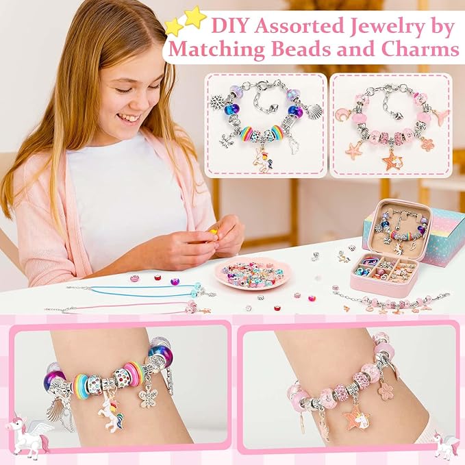 - Dream Gift for Little Girls - The charm necklace making kit for girls 8 9 10 11 12 year old is an ideal gift. Exquisite bracelet case makes girls' toys great arts and crafts kit for kids ages 8-12 birthday parties, New Year, and all kinds of festivals. Be ready to surprise your girls with this DIY bracelet making kit on their special day