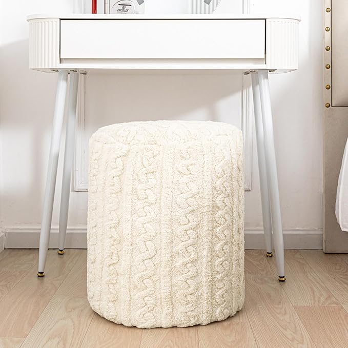 - 【Multifunction Foot Stools Ottoman】The chic ottoman stool for vanity with timelss style can be a makeup vanity chair to your dressing, a foot stool next to your sofa, a round ottoman in the entryway.