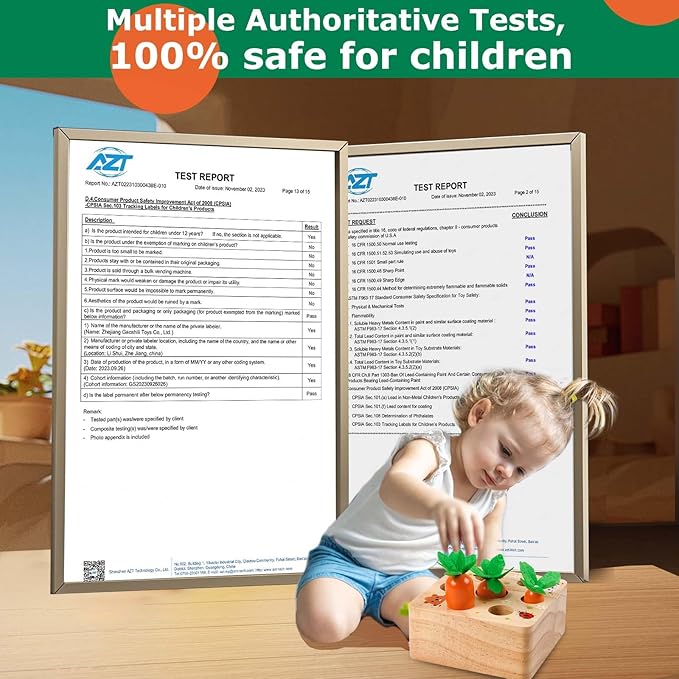- Intellectual Development: When your child thinks about how to put the carrots back into the correct holes, their size categorization and logical abilities will improve. In addition, our toy is also great for learning fine motor skills and problem-solving concepts