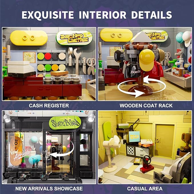FUNWHOLE Skate-Shop Lighting Building-Bricks Set - Street Fusion City Skate Store Collection LED Light Modular Building Kit 1573 Pcs for Adults and Teen
