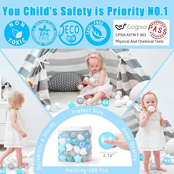 - Material: Our Gogoso ball pits balls are designed with safety-fun in mind. Made from non-toxic materials for babies, toddlers, and children.