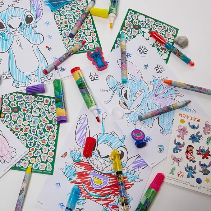 - 200+ PC. STITCH ART SUPPLIES - All the art supplies kids need are included in this fun activity set. They can stamp, color, draw, sticker, and even give themselves tattoos. Born to be a hero!