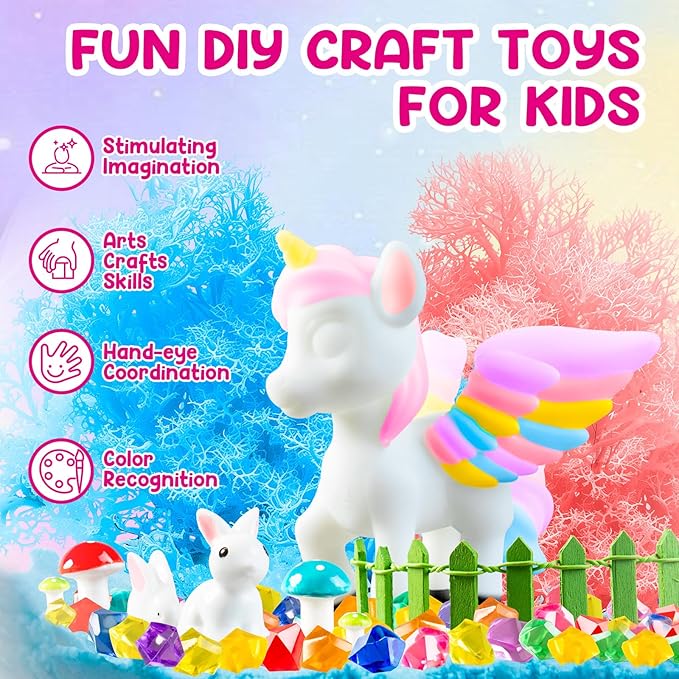 Light-Up Unicorn Terrarium Kit for Kids, Unicorn Toys, LED Night Light, Grow Plant, Paint Set, Arts & Crafts Kit for Little Girls & Boys Age,3 4 5 6 7 8 Old Girls Gifts Christmas Birthday