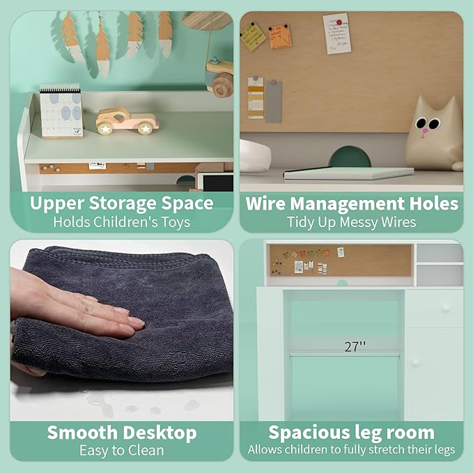 - MULTI-FUNCTIONAL STORAGE AREA:JMMD kids desk and chair set has a shelving area for decorations, picture frames, and pencil holders, as well as double small shelves for books and toys. The study table also comes with drawers and storage cabinets that can easily accommodate children's school supplies and daily necessities.