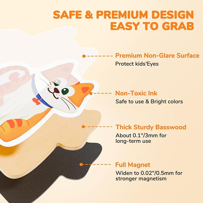 - Safe & Reliable: Unlike ordinary cardboard, these magnets for kids use thick basswood as an interlayer, which is more robust and easier for toddlers to grip. Printed with non-toxic vegetable ink, they are free of harmful substances. The rounded, smooth edges are secure and suitable for young children