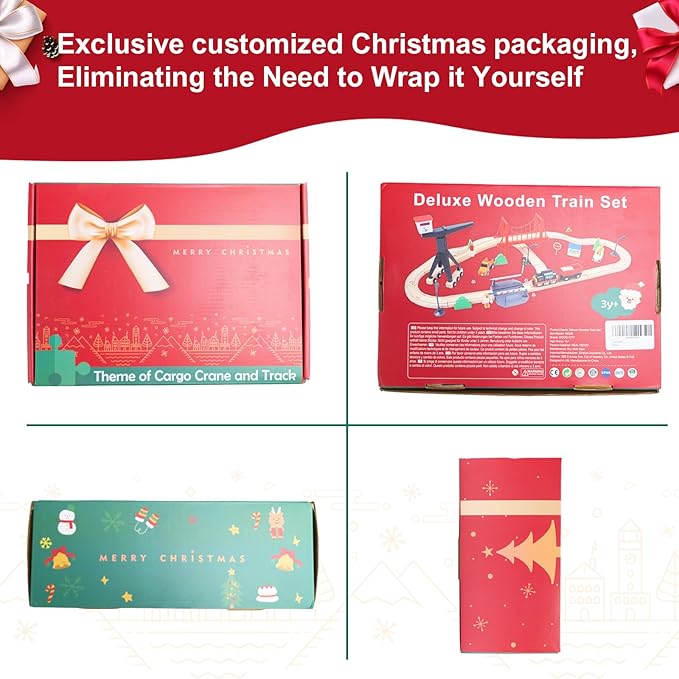 - 🚂 WOOD CITY specialize in customizing the outer packaging of Christmas attributes, which is more convenient to be given as a Christmas gift to children. Because parents don't need to wrap the gifts additionally. Our Christmas wrapped products can be placed directly under the Christmas tree, and the design and color of the package matches the Christmas tree.