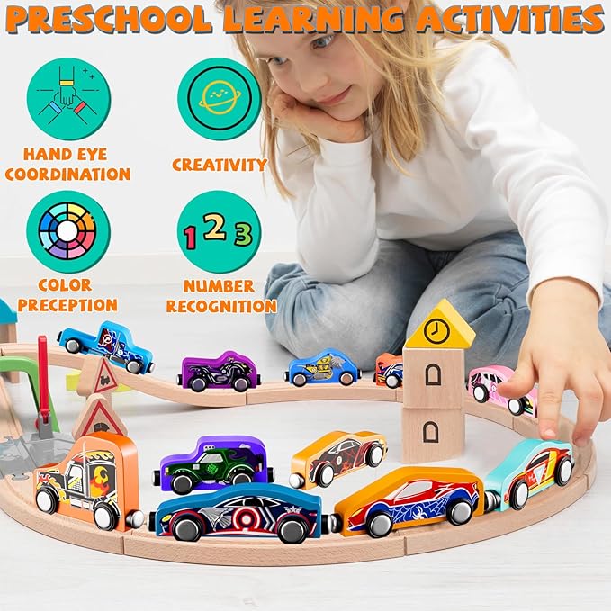 - đăChild-Safe & High-Qualityă-- We focus on quality craftsmanship to create safe toys for toddlers. This train set is crafted from 100% natural wood with eco-friendly, water-based paint. The smooth edges ensure your child's safety during play.