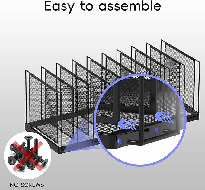 - [9 File Compartments] Our 9-section file folder organizer provides more storage space for files, books, mails, paper and magazines. 9 vertical sorters can hold your documents and laptop upright, allowing you to easily keep workspace tidy and organized.