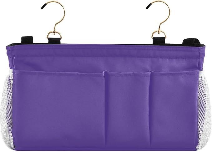 Dark Purple Bedside Caddy Storage Bag Bedside Organizer for Bunk Bed Headboards College Bedside Shelf Hanging Organizer 6 Pockets with Hooks for Magazine Water Bottle Holder