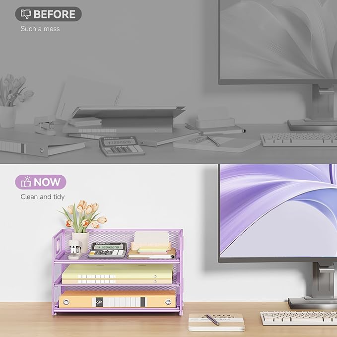 - Aesthetic Decor Design: The 3 tier paper tray organizer has a contemporary and minimalist design. The different color choices enhance the overall appearance, making it suitable for various decor settings, whether in a home office, business office, or school