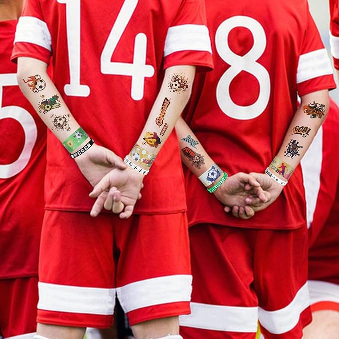 - SATISFACTORY COMBINATION - Each soccer party favors package with 20 awesome soccer silicone bracelets, 20 soccer slap bracelet, and 20 sheet soccer tattoo. We're all about celebrating the love of soccer, and we want everyone to show off their personality in style on their elbow or wrist!