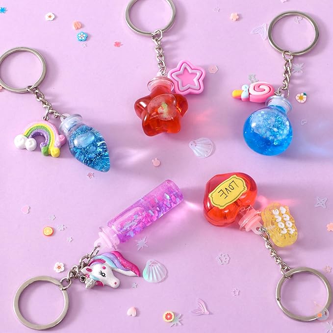 - Fairy Themed Mixed Potion Craft Kit: Immerse into the mystical world of potions. The craft kit toy includes a magical glowing potion bottle, 20 potion bottles of various shapes, a recipe book, a storage box, a wand, an array of magic fairy items and tools. The complete potion kit for the entire magical creation creates endless possibilities for little witches and wizards