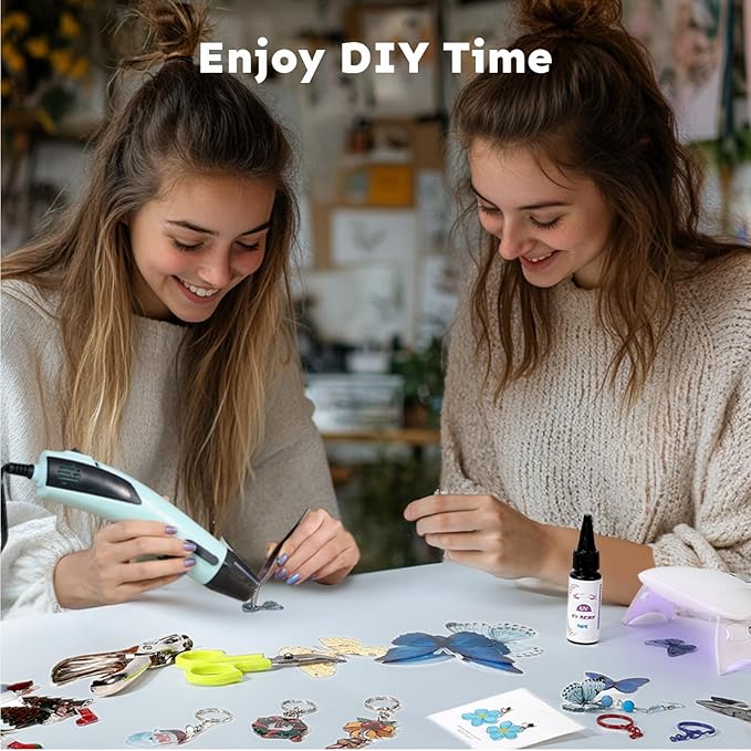 • Various tools: Our kit includes a heat gun for precise control and efficient shrinking of shrink plastic. It also paired with UV resin and a mini UV lamp, which will boast a glossy finish, enhancing the overall quality and durability