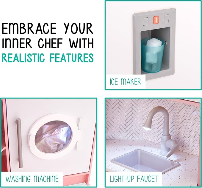 - THE ULTIMATE TRUE-TO-LIFE KITCHEN | All-in-One Kids Play Set Provides Hours of Fun, Educational Entertainment | See Little Ones Imagine, Explore, Learn & Pretend with a Variety of Lifelike Cooking & Cleaning Essentials Including a Refrigerator, Ice Maker, Microwave, Oven, Stovetop, Sink, Washer/Dryer, Etc.