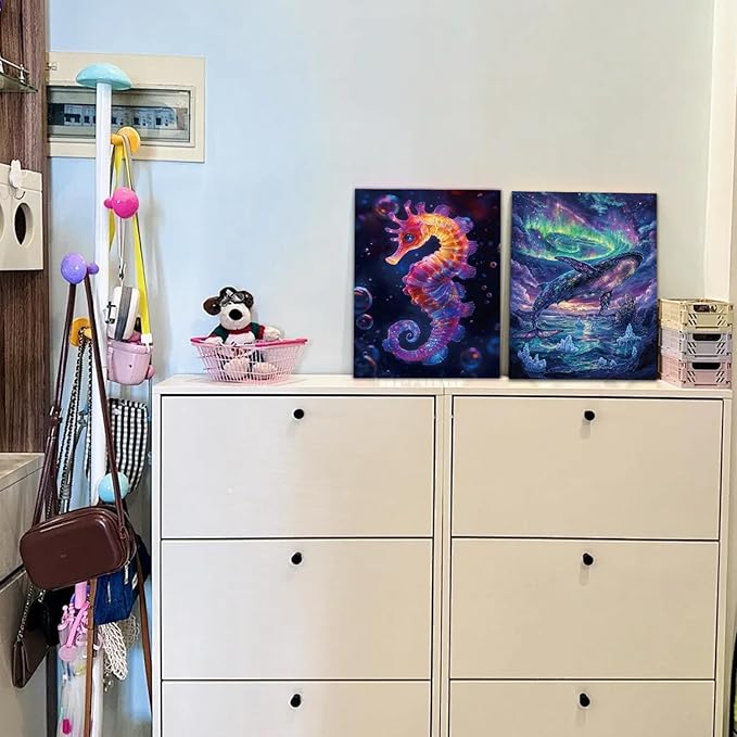 Georgie Porgy Scratch Paper Art Set for Kids Adults Magic Rainbow Scratchboards for DIY Arts and Crafts Kits Christmas Birthday Gift with Scratching Tools Kit (A4-Noctilucent Whale + Sea World)