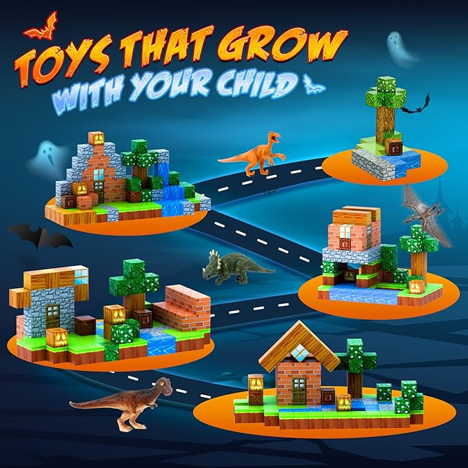 Magnetic Blocks 110PCS with 6 Animal Toys, Punpkin Building Blocks Set, Toys for Boys & Girls Age 6-8, Stacking Building Toys for Toddlers Sensory Toy for Kids 6+