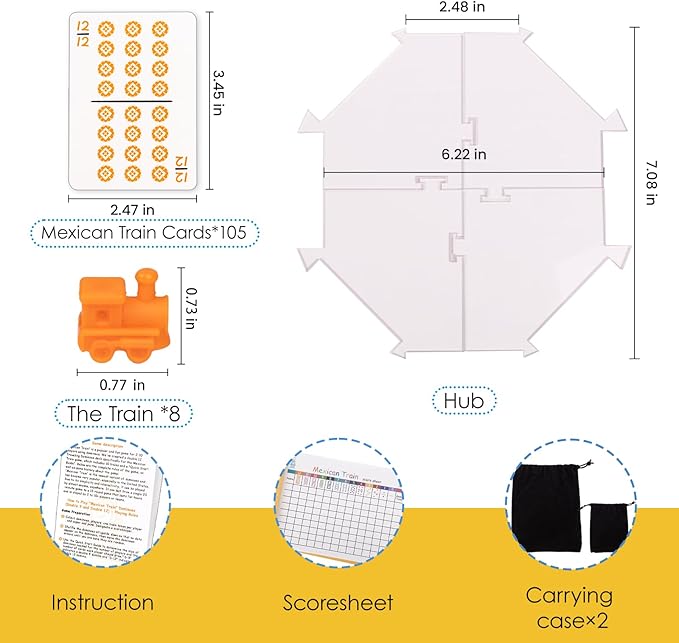 Mexican Train, Mini Travel Dominoes Game:105 Cards+1Hub for Mexican Train+8 Train Marker+1 Instruction+1 Scoresheet,Double 12 and Double 9 Dominoes Set,2-10 Players,Dot Dominoes,Travel Dominoes