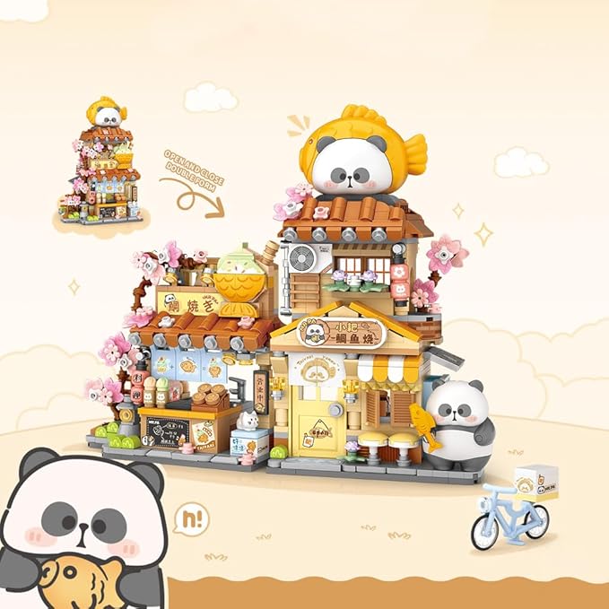 Panda Street Scene Building Kit, Openable Taiyaki Shop Building Set for Boys Girls Age 8+,858pcs Mini Bricks