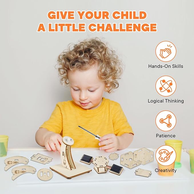 - Solar - Powered Fun with Rotating Satellite:The rotating satellite in this 3D wooden puzzle adds an exciting element to the toy. Without the need for batteries,this assembly building kit can rotate smoothly and quickly even in weak light. Kids can enjoy the fun of seeing the satellite spinning after they complete the assembly.
