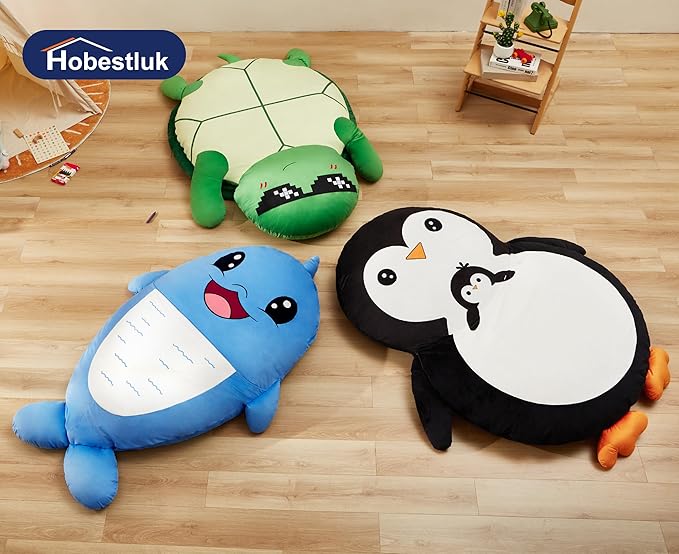 Bean Bag Chairs Bean Bag Floor Cushion Sleeping Mat Bean Bag Chair Adults Beanbag Lounger with Cute Penguin Design for Living Room Bedroom or Playroom (Large,Black)