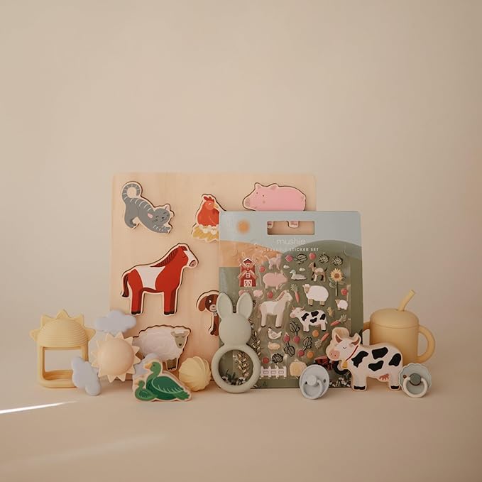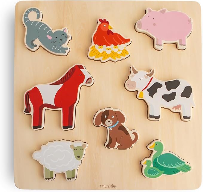 mushie Wooden Farm Puzzle | for Kids 3 Years+ | Preschool Educational & Toddler Montessori Toys (6 pcs)