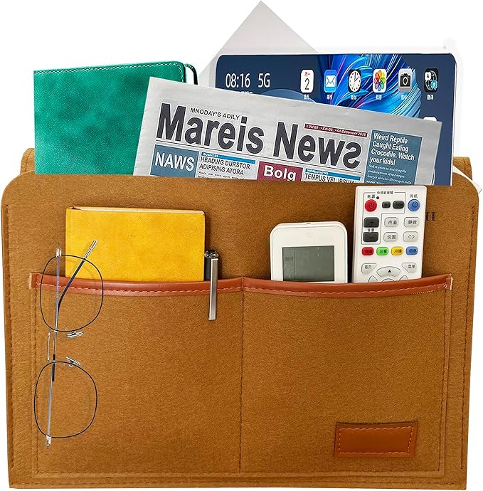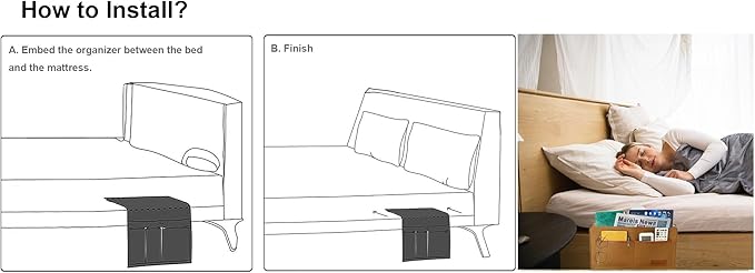 - A Universal Organizer – KAKKOII Bedside Storage organizer is easy to install. KAKKOII Felt Bedside caddy is a versatile addition to your living space, designed to fit most mattresses and couches. Its universal compatibility ensures you can use it in various rooms around your home.