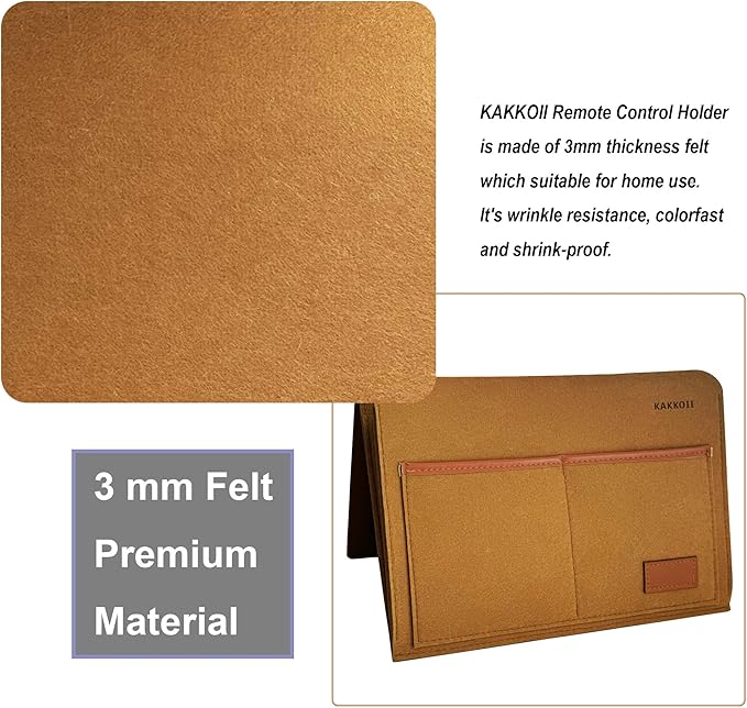 - Soft Material- KAKKOII remote control holder is made of 3mm thickness felt which suitable for home use. It's wrinkle resistance, colorfast and shrink-proof, sturdy and soft, ensuring it won't scratch or damage your belongings. It's designed with care to protect your possessions.