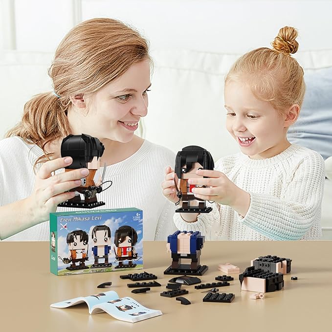 - [Decoration for TV Fans] Comes with exquisited box, our eren yeager/levi/mikasa cartoon block set will be awesome birthday and birthday for Fans kids aged 6+. Plenty of details, you can place your titan figures in it and create your own fight scene. Greatly increase the child's hands-on ability and intelligence.