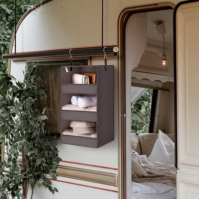 GRANNY SAYS 3-Shelf Closet Organizers and Storage, Foldable Hanging Closet Organizer, Hanging Closet Shelves with 2 Metal Hooks, Leak-Proof Hanging Shelves for Closet, Bedroom, RV, Camper, Dark Brown