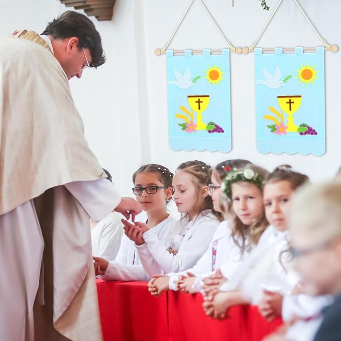- Colorful and Distinctive Visual Appeal: every banner in our communion banner kit features a colorful and exquisite design; Each piece carries an intrinsic sense of wonder and spiritual meaning, making it an ideal activity for a first communion class