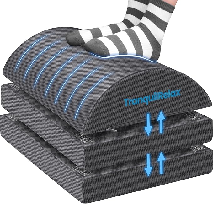 - Versatile Design: Use it under your desk for ergonomic leg support, under your knees for extra comfort, or flip it into a rocking foot rest for relaxation. This compact, adaptable foot rest brings comfort wherever you need it