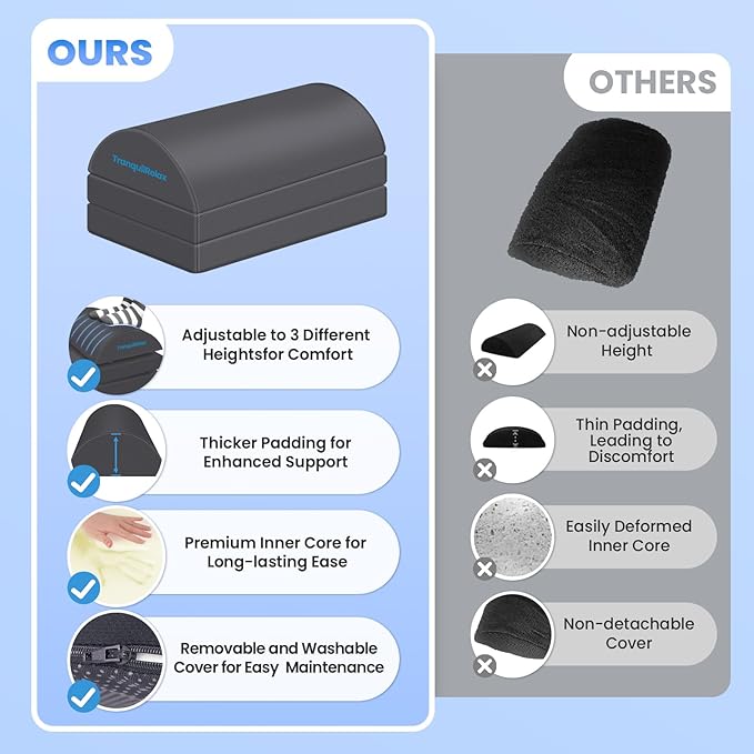 - Versatile Design: Use it under your desk for ergonomic leg support, under your knees for extra comfort, or flip it into a rocking foot rest for relaxation. This compact, adaptable foot rest brings comfort wherever you need it