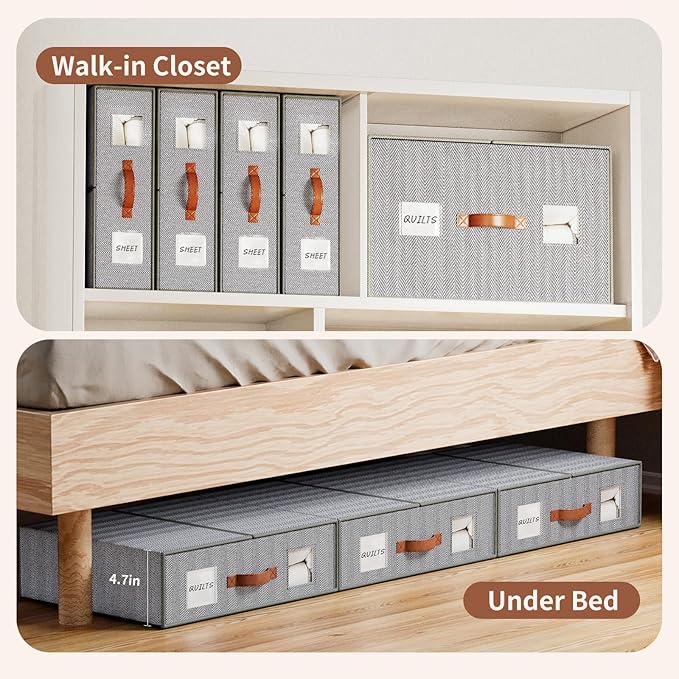 - Foldable Design: Foldable bed sheet set organizers folds to 1" thick when not in use, making them easy to store. Also on each of the storage bag Handles make it easy to pull them from the closet and Organizer your linens.