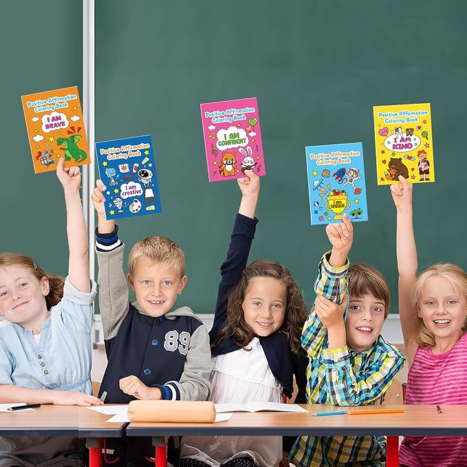 Dvbonike 24Pcs Positive Affirmation Coloring Books - Promote Confidence DIY Color-in Pages Booklet Bulk Drawing Motivational Stress Relieving Party Supplies for School Classroom Rewards Gift for Kids