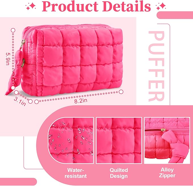 - 【Soft & Lightweight Material】:The quilted makeup bag is made of high-quality cotton fabric with a fluffy padded structure that ensures comfort to the touch without causing any friction or discomfort to the skin. Chic quilting patterns, combined with superb craftsmanship, ensure that your accessories remain safe on the inside.