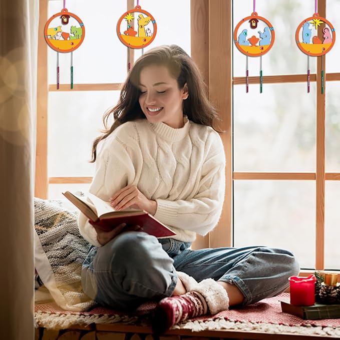 - Craft Project For Kids:Paint your favorite color on the unfinished wooden Nativity scene cutouts,and then go through the holes of wood chips and chime rods with a rope,and you will get a unique Christmas jesus wind chime.These wooden wind chimes for outside will sway with the wind and made a joyful sound. Hanging wind chimes in the windows, doors and wall,Christmas trees, fireplaces and so on which emit more positive energy.