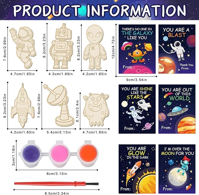 - High quality materials: The space themed painting kits are made of premium wood material with smooth surfaces, making it easy for kids to paint and decorate. The Astronaut thank you cards are made of thick paper, do not fade or break easily and reusable.