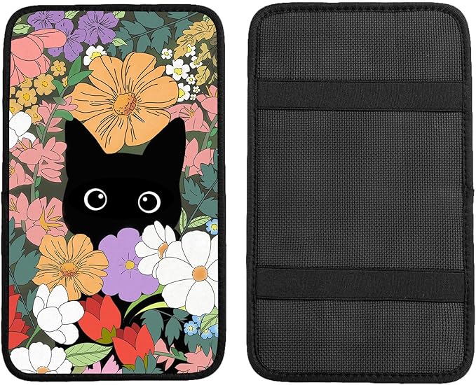 Black Cat Auto Center Console Pad,Soft Waterproof Car Center Console Cover Auto Armrest Seat Box Cover Protector for Most Vehicle SUV Truck Car