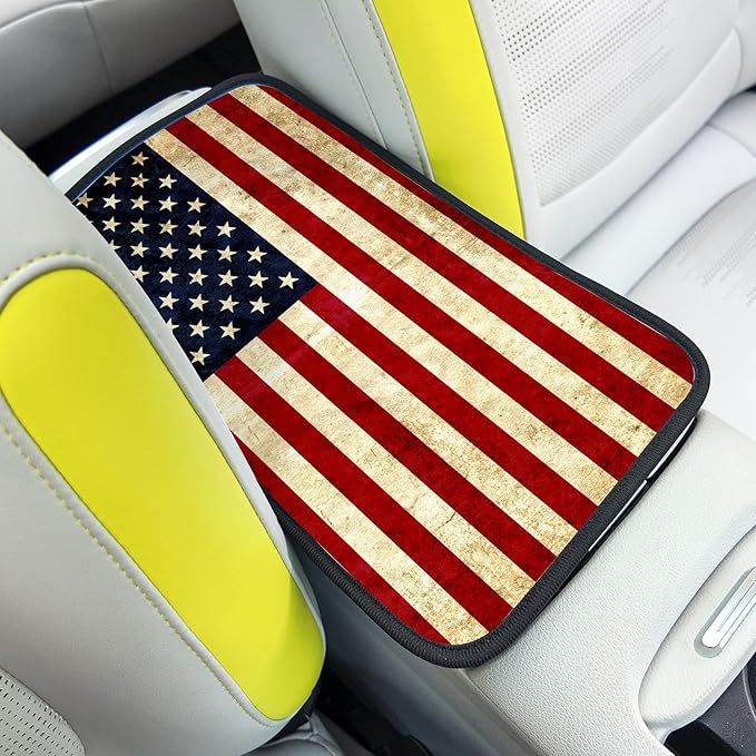 Adastrah Auto Center Console Pad,American Flag 1 Auto Armrest Pad Seat Box Cushion,Armrest Cover Protector for Vehicle SUV Truck Car