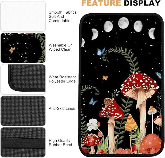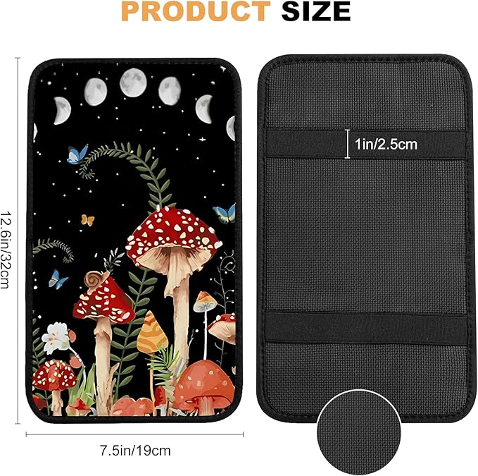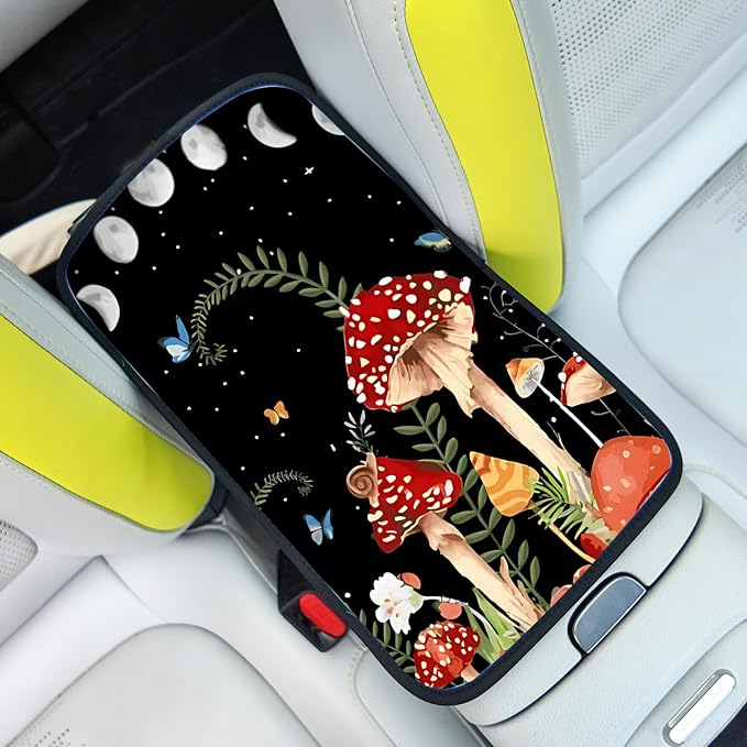 Adastrah Red Mushroom Auto Center Console Pad,Soft Waterproof Car Center Console Cover Auto Armrest Seat Box Cover Protector for Most Vehicle SUV Truck Car